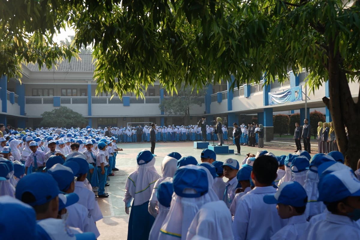Upacara bendera yang berlangsung di halaman sekolah ini dihadiri oleh seluruh siswa, guru, dan staf GIS 2 Serpong. Suasana khidmat dan serius terlihat saat Ms. Yulianti naik ke mimbar untuk memberikan amanatnya. Dalam pidatonya, beliau menekankan pentingnya menciptakan lingkungan sekolah yang damai, nyaman, dan saling menghargai.